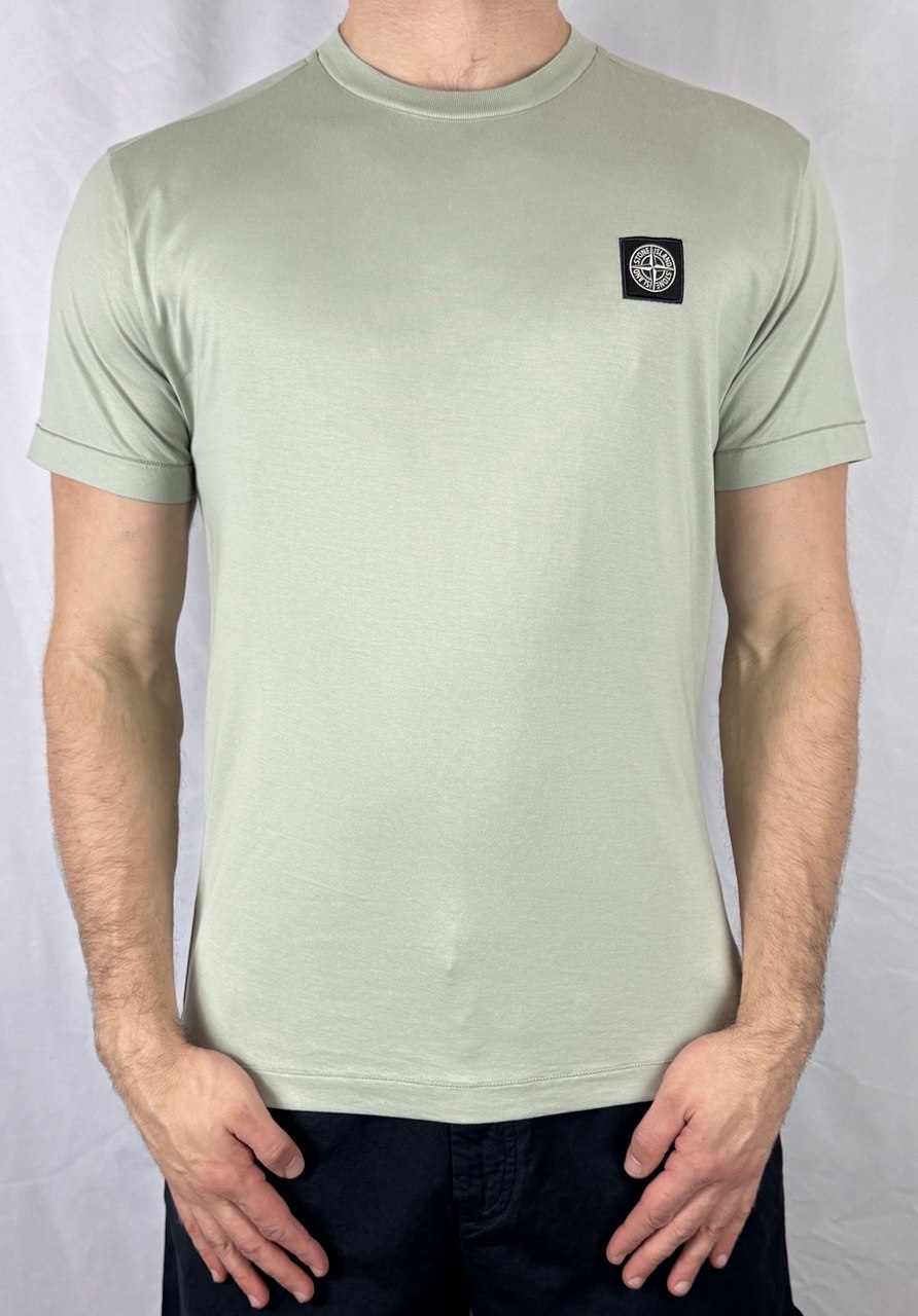 Футболка Stone Island 2100027 60/2 COTTON JERSEY приталенного кроя из хлопкового трикотажа 60/2, с ребристым воротником, нашивкой с логотипом в виде компаса на груди и цепочной строчкой на манжетах и ​​подоле. Окрашена в готовом виде.