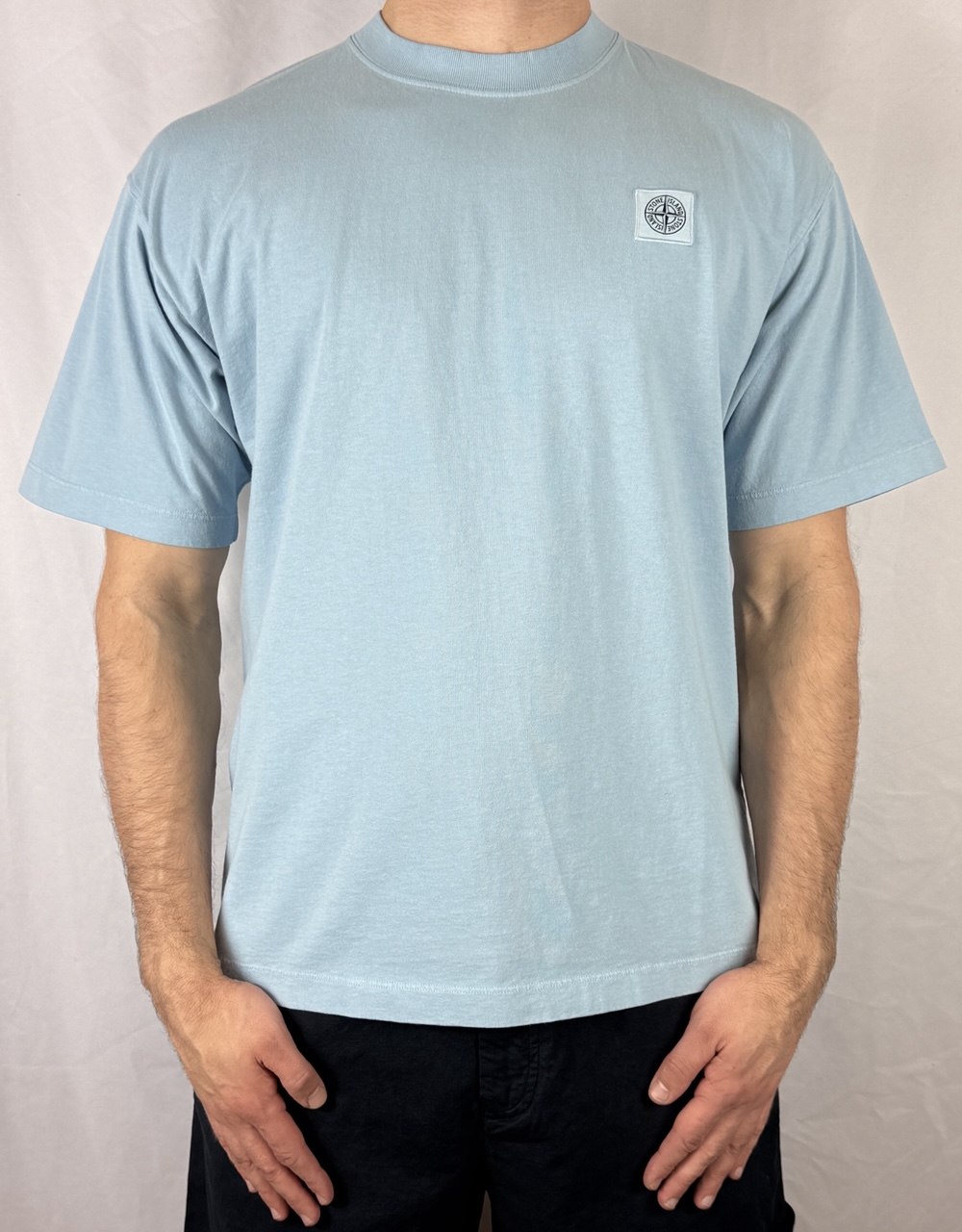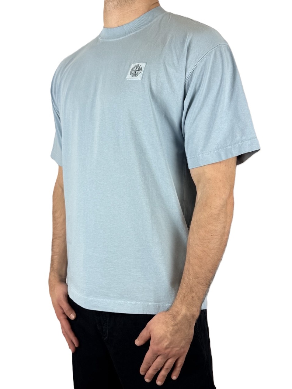 Футболка Stone Island 2100030 COMBED ORGANIC COTTON JERSEY стандартного кроя с короткими рукавами из чесаного органического хлопка, с ребристым воротником и нашивкой-компас. Окрашена в готовом виде.